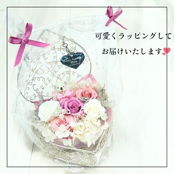 【名入れギフト 】プリザーブドフラワー アレンジメント ハートのメッセージプレート付 名入れギフト お誕生日 記念日 結婚記念日 お祝い 母の日 父の日 敬老の日 クリスマス バレンタイン ホワイトデー 退職 昇進 還暦 喜寿