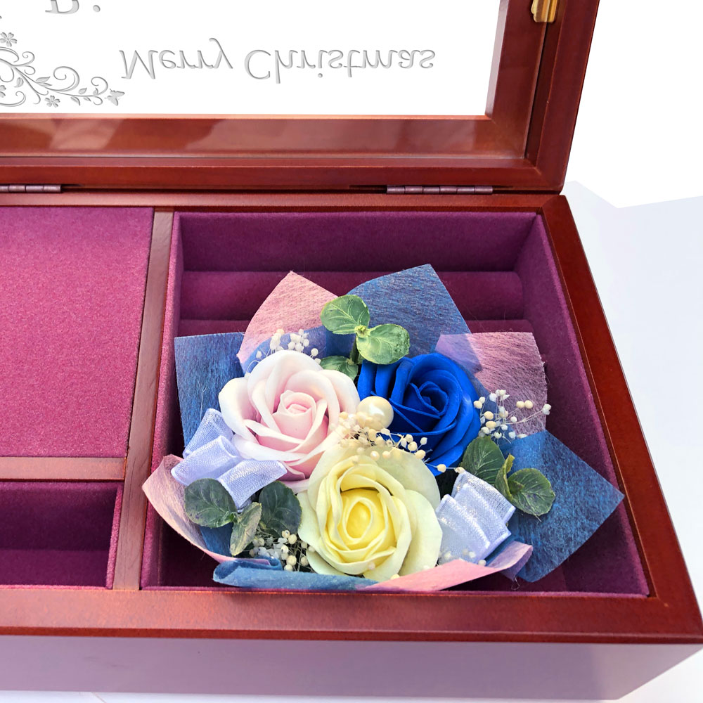 名入れ オルゴール ソープフラワー入り スワロフスキー付 星に願いを プレゼント ギフト 記念日 お誕生日 結婚祝い 母の日 クリスマス ホワイトデー 敬老の日 還暦 お祝い